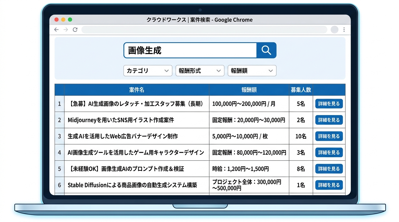 - ✅ クラウドソーシングサイトで画像生成の案件を検索できた