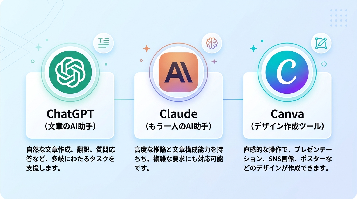 - 3つのAIツール(ChatGPT・Claude・Canva)のアカウントを作成した