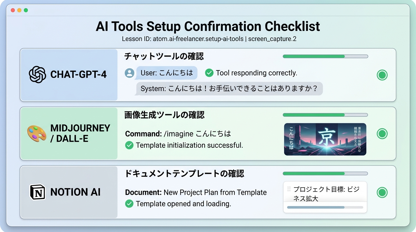 3つとも確認できたら、あなたの「AI副業道具箱」は完成です。