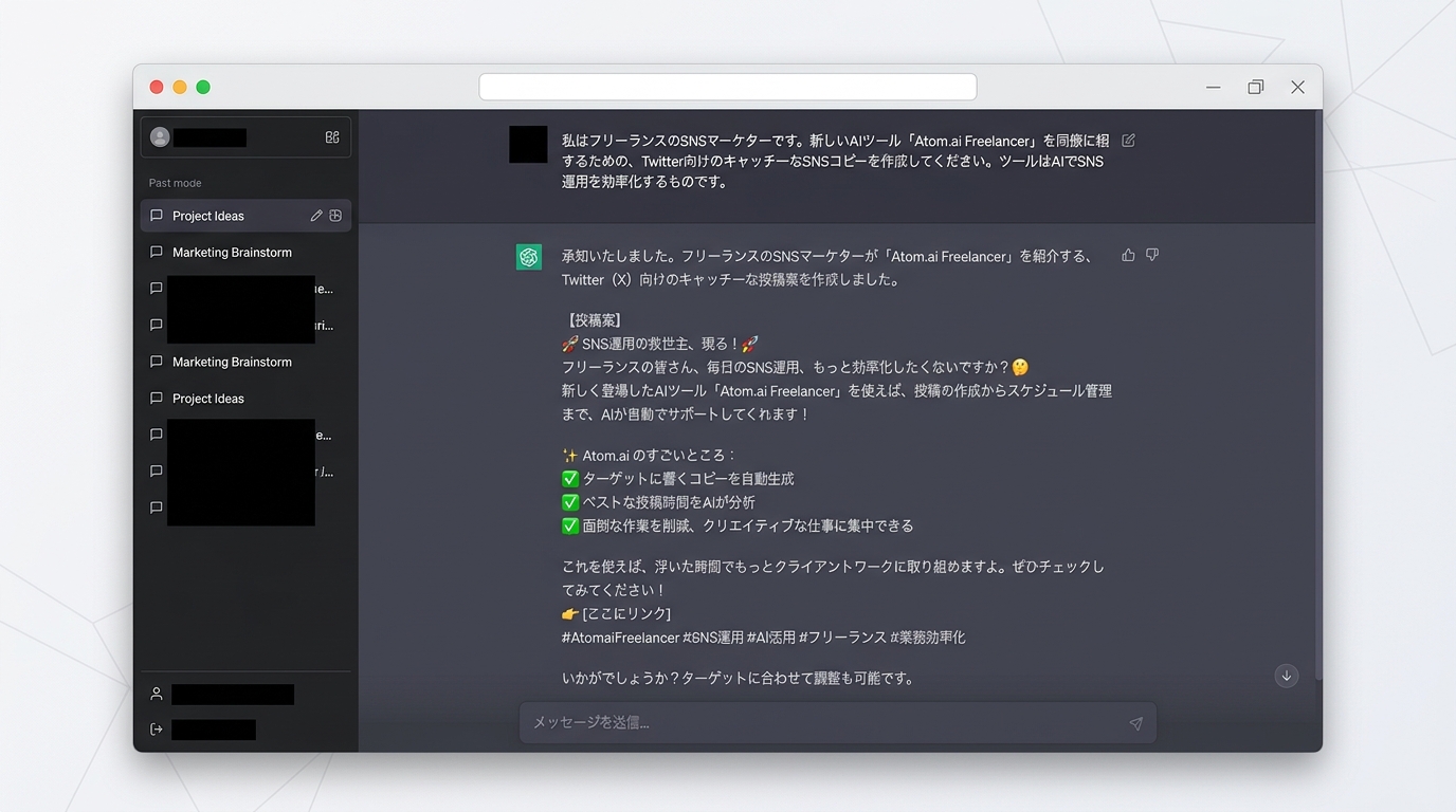 プロンプトが書けたら、AIに送ります。ここではChatGPTを例に説明しますが、Claudeなど他のツールでも手順はほぼ同じです。