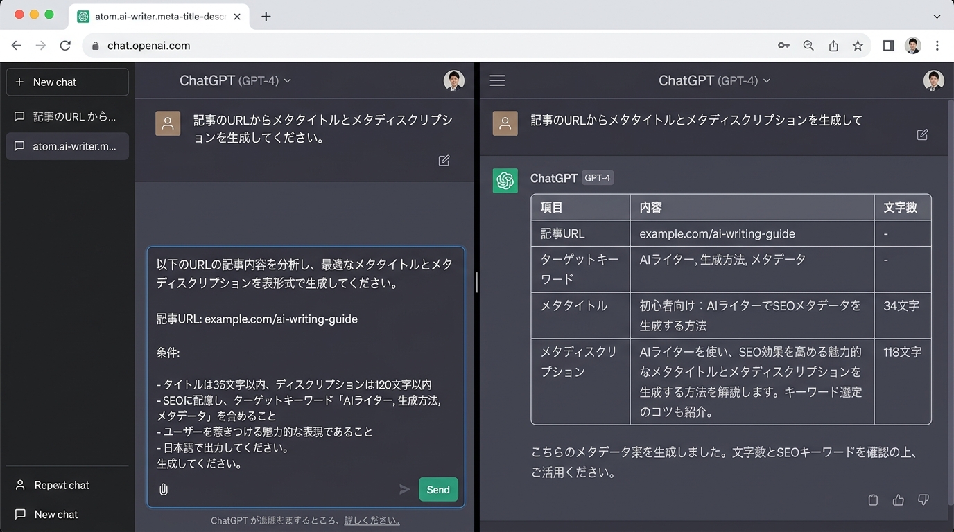 - 3〜10ページ分のメタタイトルとディスクリプションを、AIを使って一度に作れる