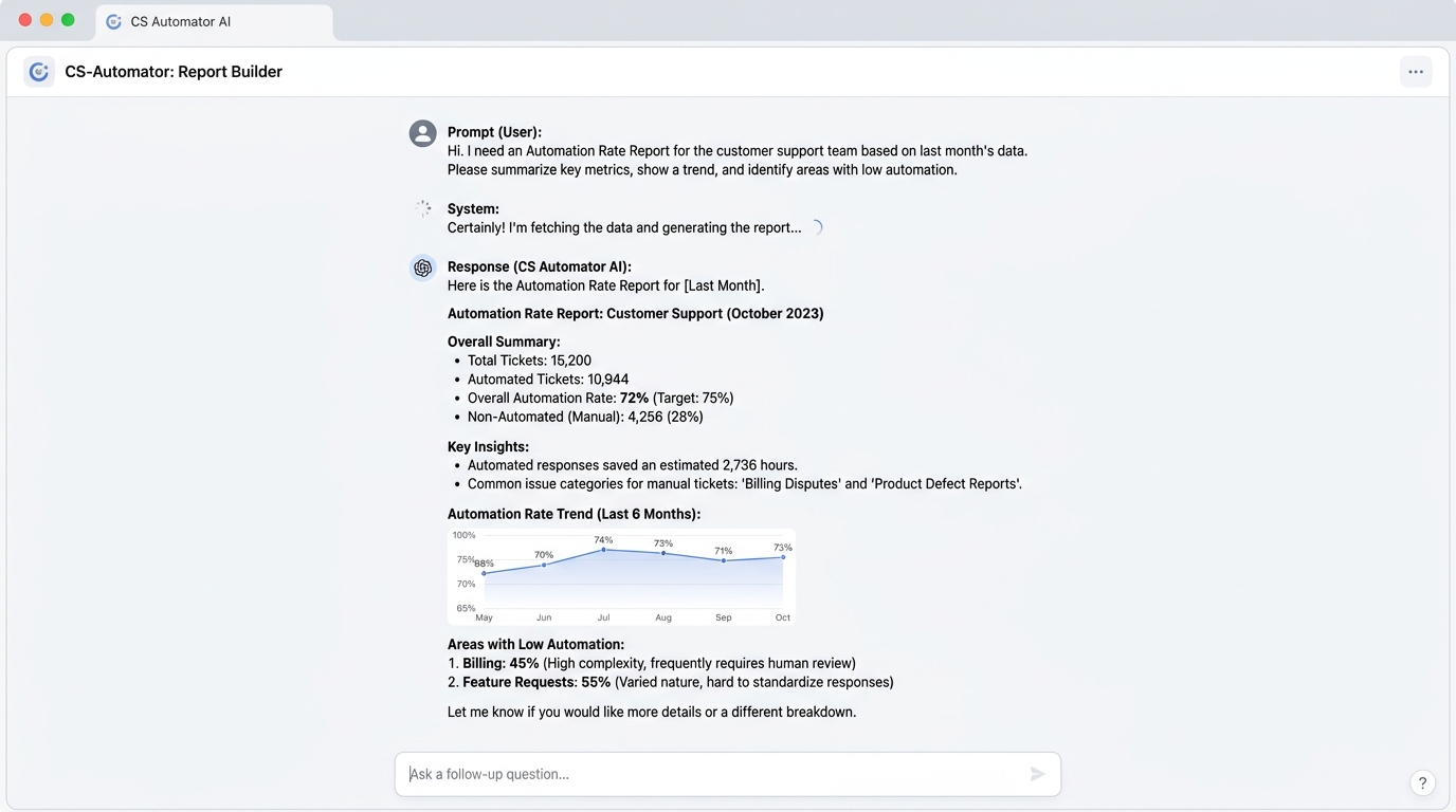 カスタマーサポートの自動化率レポートを日本語で作ってください。