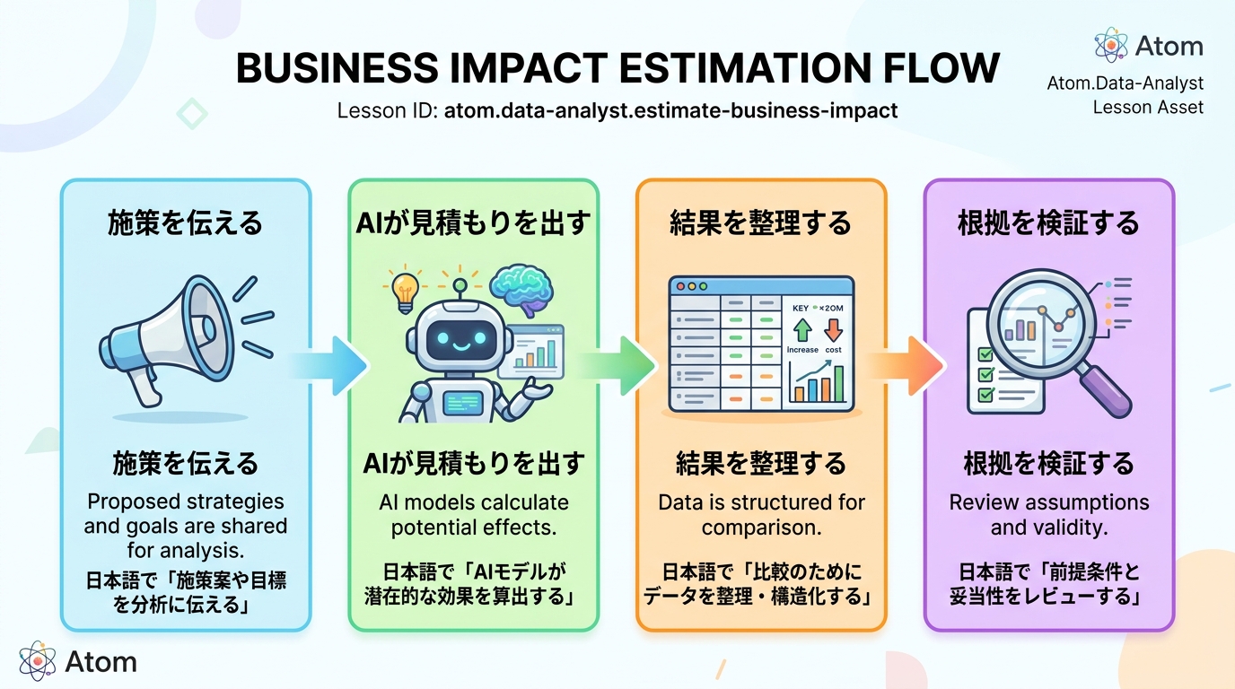 施策影響を見積もる 新しい施策(=チームや会社でやろうとしている取り組み)を提案するとき、「どれくらい効果があるのか?」を数字で示せると説得力がぐっと上がります。 これは、レストランで新しいメニューを導入する前に「...