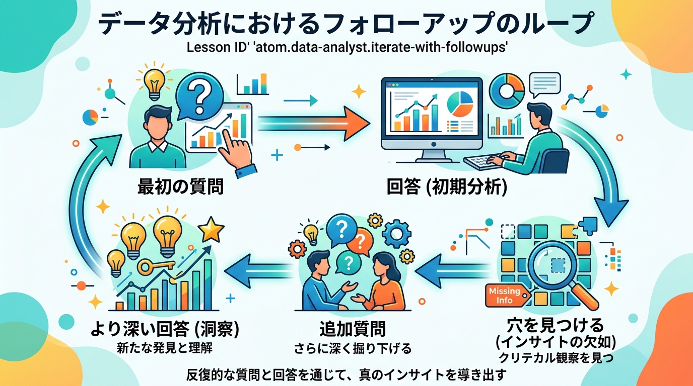 AI ツール(=ChatGPT や Claude など、対話型の AI サービス)でも同じです。 最初の回答だけで終わらず、追加の質問を重ねることで あなたの分析はぐっと深くなります。