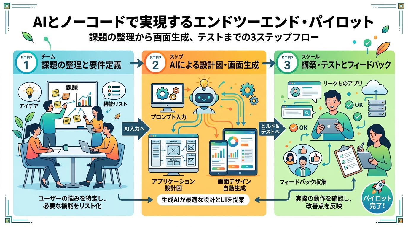 冷蔵庫の残り物でサッと一品作るように、AIという「料理上手な助手」に手伝ってもらって、あなたの職場の小さな困りごとを解決するツールを15分で形にします。プログラミングのコードは一切書きません。