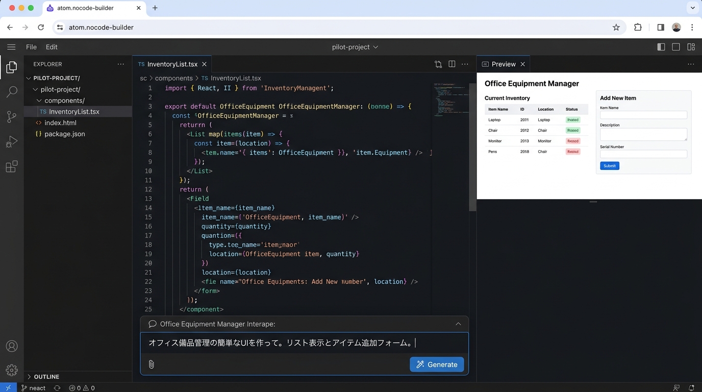 ここからが一番ワクワクする工程です。AIの力で実際に動く画面を作ります。