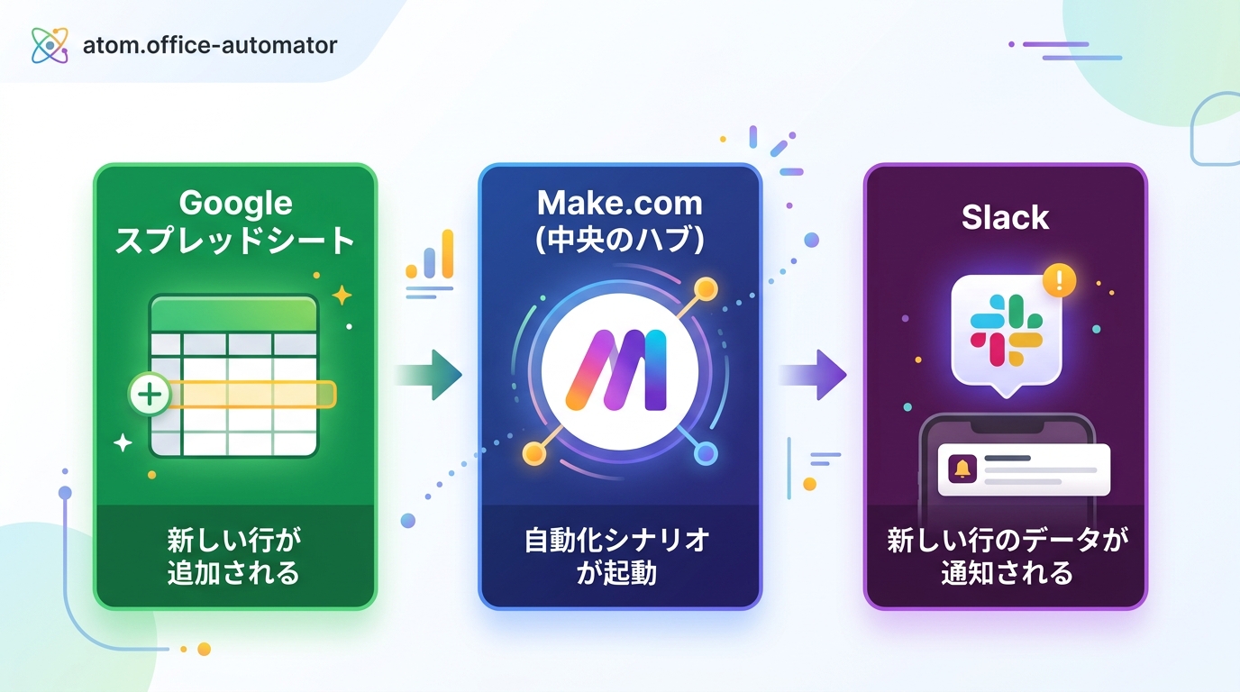 複数アプリ間のデータ同期を自動化する あなたの職場でも、「スプレッドシートに入力したあと、Slackにも同じ内容を手作業でコピペしている」なんてことはありませんか? こうした繰り返し作業は、一度仕組みを作るだけで完...