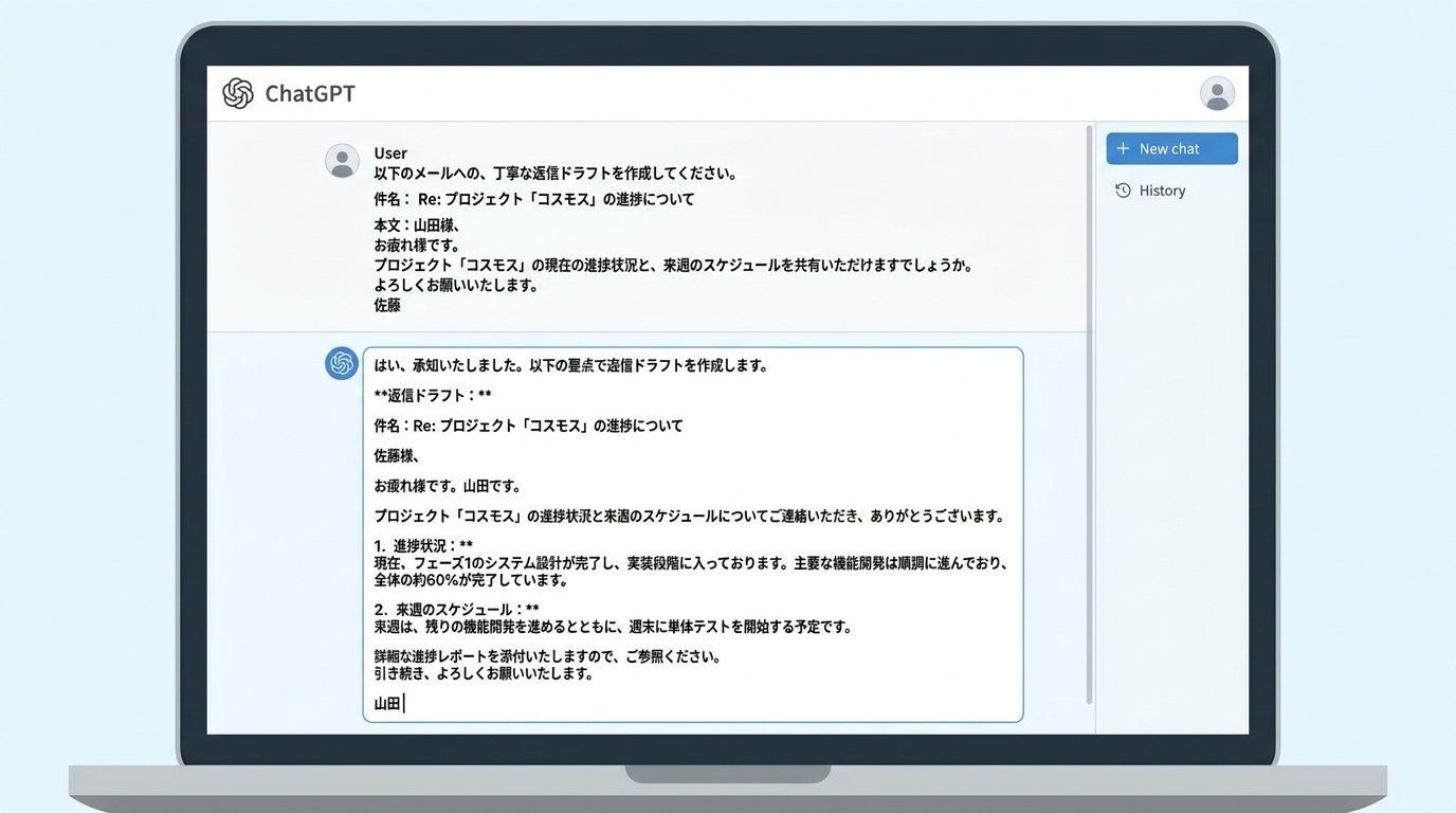| 数字や名前が間違っている | AIは事実を「作り出す」ことがある | 元メールと見比べて、数字・名前は必ず手動で確認する |