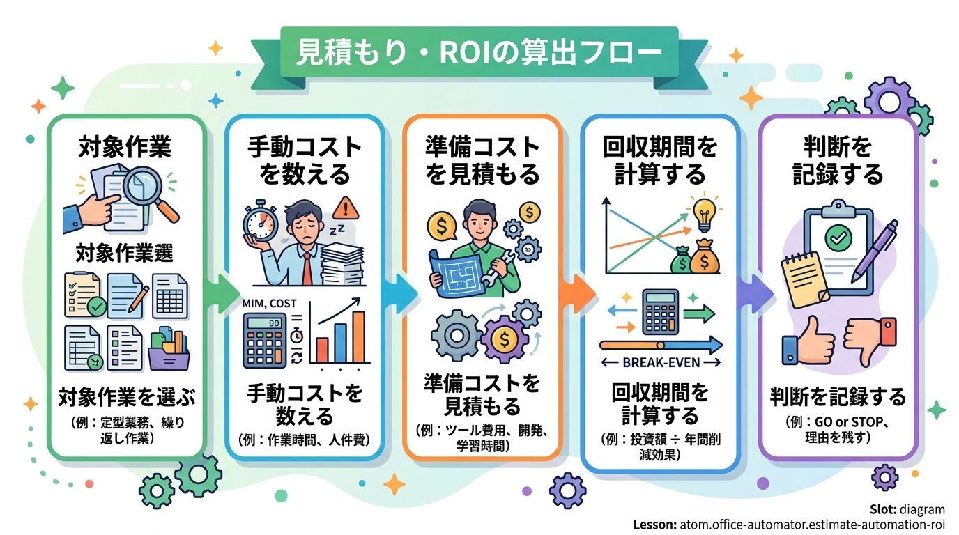 「これ、自動化した方がいいのかな?」と思ったとき、感覚だけで決めるのではなく、数字でざっくり判断できるようになります。