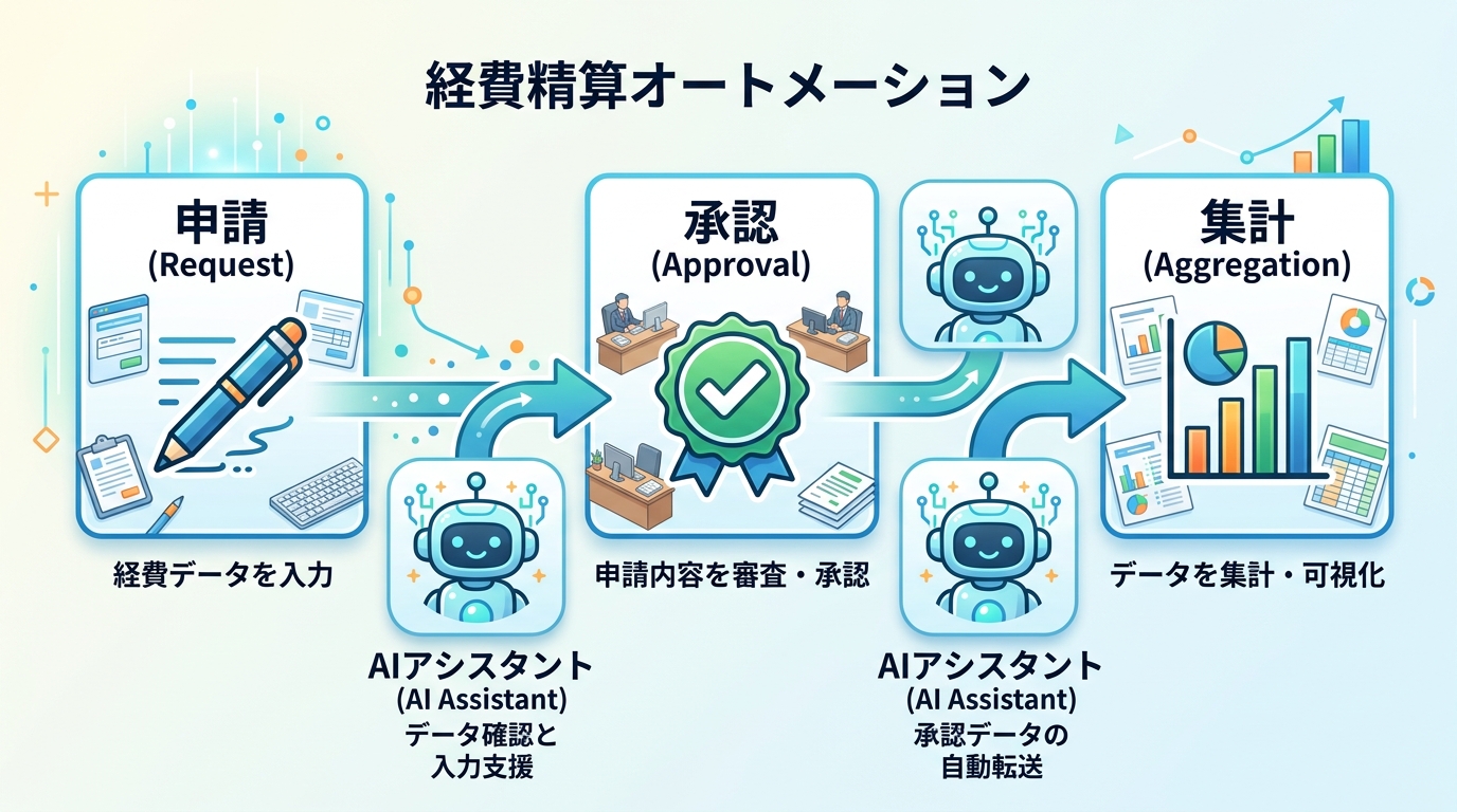 あなたがこれから学ぶのは、経費精算(=仕事で使ったお金を会社に返してもらう手続き)の「申請→承認→集計」の流れを、AIツールを使って自動化する方法です。