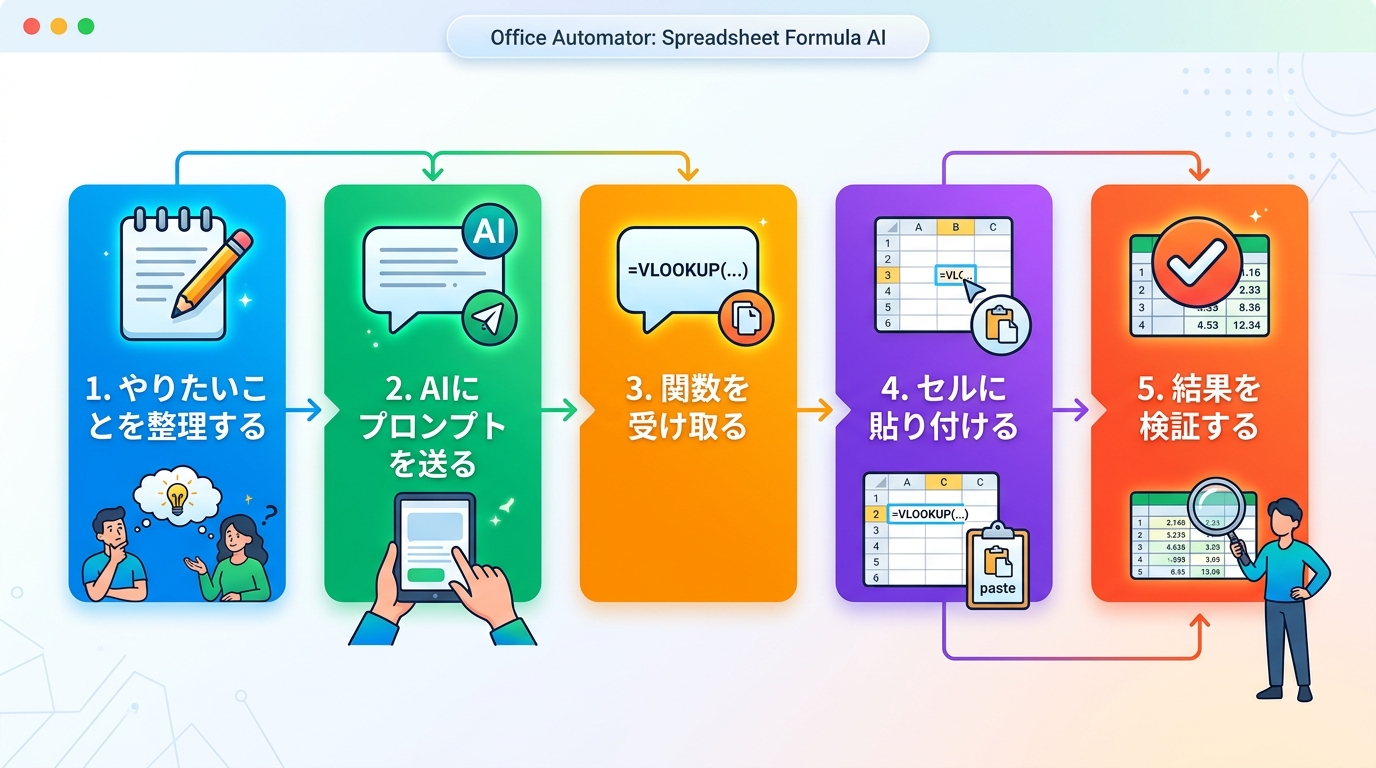 関数の名前を暗記する必要はありません。「何を計算したいか」さえ言葉にできれば、AIがあなたの代わりに最適な関数を選んでくれます。