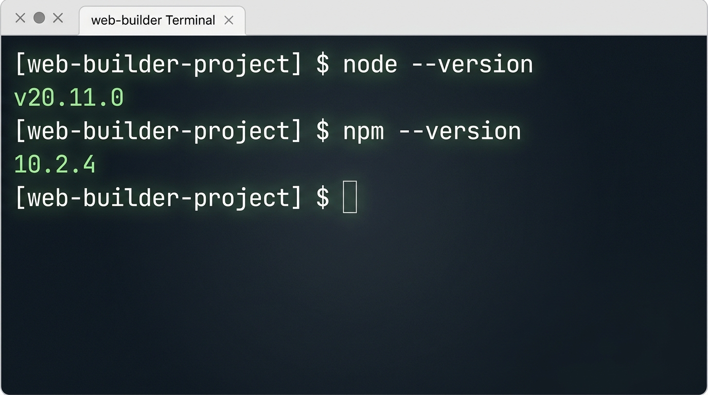 - Node.js(=JavaScriptというプログラミング言語をパソコン上で動かす土台)と pnpm(=部品をまとめてインストールする道具)が、前のレッスンで入っている状態