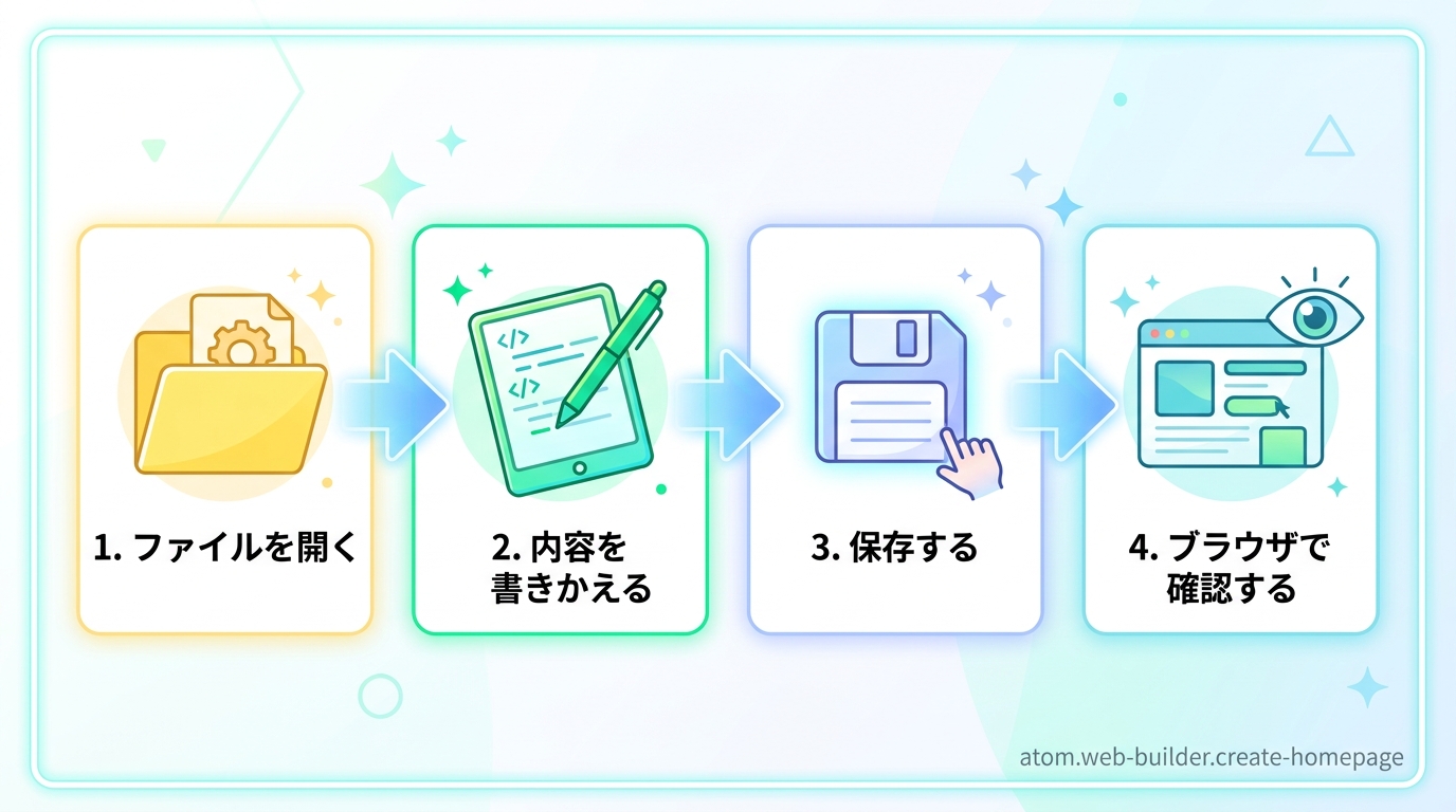 ホームページを作るのは、はじめての料理に似ています。レシピ(=作り方の手順)を見ながら材料を合わせていけば、誰でも一品は完成します。今回は、AIツール(=人工知能の力であなたを助ける便利な道具)がレシピを考えてくれるので、あなたは「こんなページがいい」と伝えるだけで大丈夫です。
