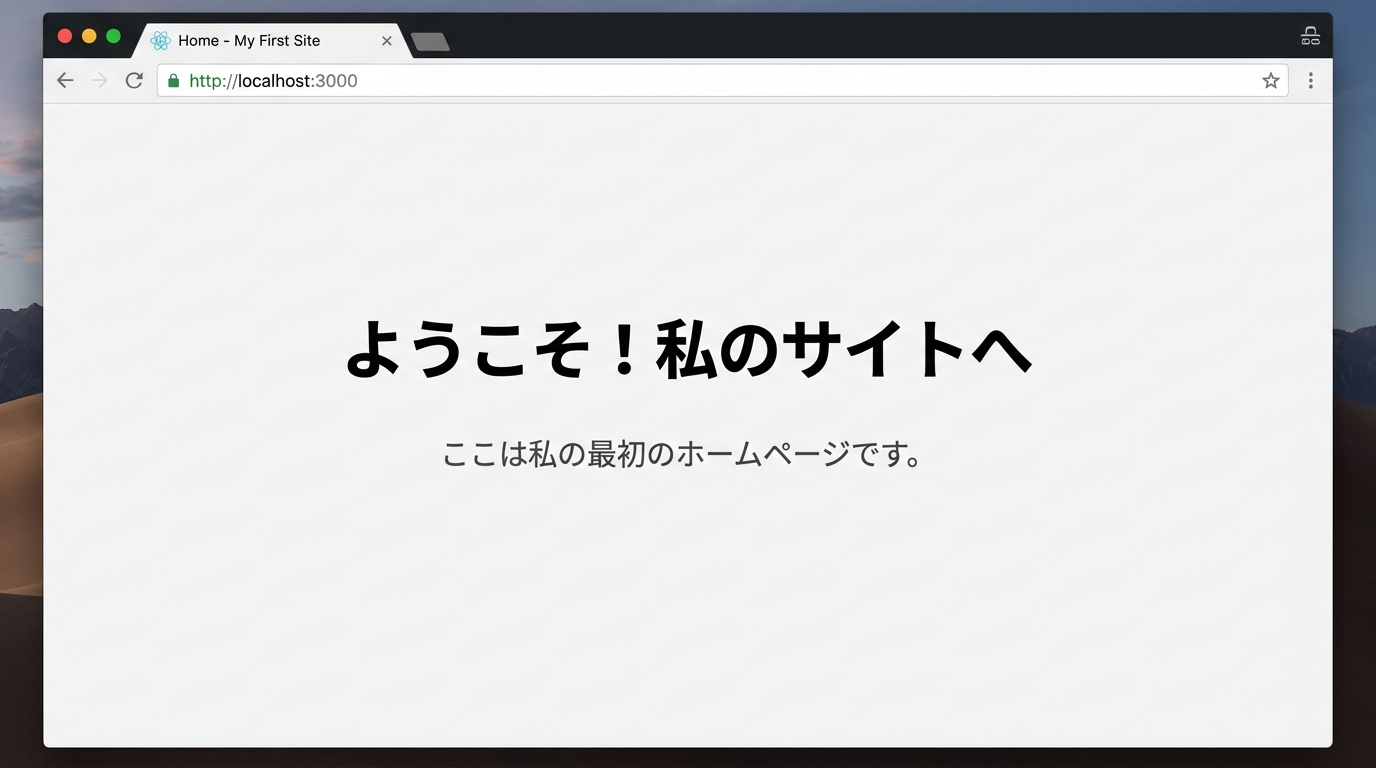 何をしているか: 確認用ページをあなたのパソコン上に立ち上げています。ブラウザのアドレスバー(=URLを入力する場所)に http://localhost:3000 と入力して開きましょう。