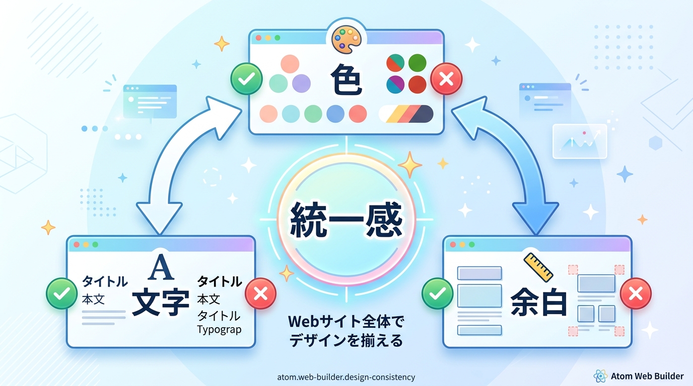Webサイトも同じです。ページごとに色や文字の大きさがバラバラだと、訪れた人が「ここは何のサイト?」と混乱してしまいます。