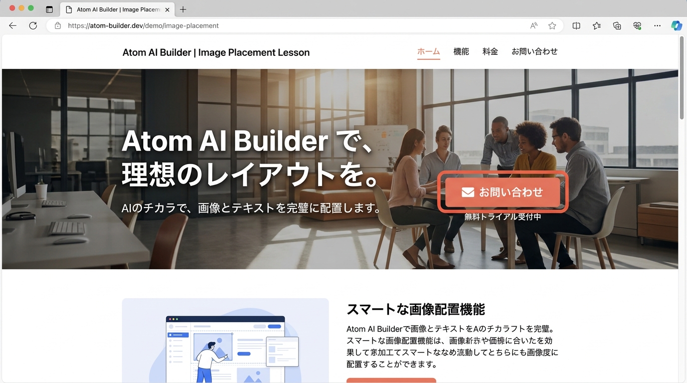 良いお願いの例: 「ヘッダーの右端に /images/logo.svg を 40px × 40px で表示して、クリックするとトップに戻るリンクにしてください」