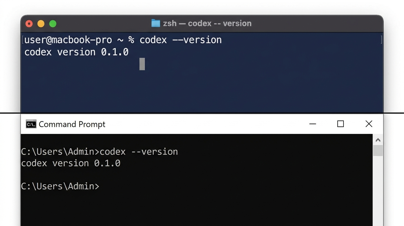 悪い例: command not found: codex と出る → インストールが完了していないか、パス(=パソコンがプログラムを探す場所のリスト)が通っていません。「つまずき対策」を参照してください。