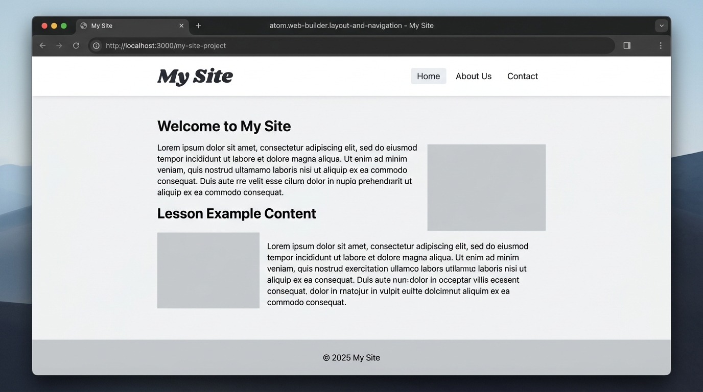 - フッター:中央に「© 2025 My Site」と著作権表示